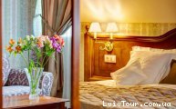 Rooms descriptions Standard - 2000 UAH Cozy room (22 m²) with large double bed, desk, cable TV, free Wi-Fi Internet, air condition, minibar, safe, telephone. The bathroom is equipped with a shower cabin or classic bath, hair dryer, bathrobes, slippers, bathroom accessories. Superior - 2360 UAH Room (26 m²) with large double bed, desk, cable TV, free Wi-Fi Internet, air condition, minibar, safe, telephone. The bathroom has a shower cabin or classic bath, hair dryer, bathrobes, slippers, bathroom accessories. Superior standards differ from the standard by area.