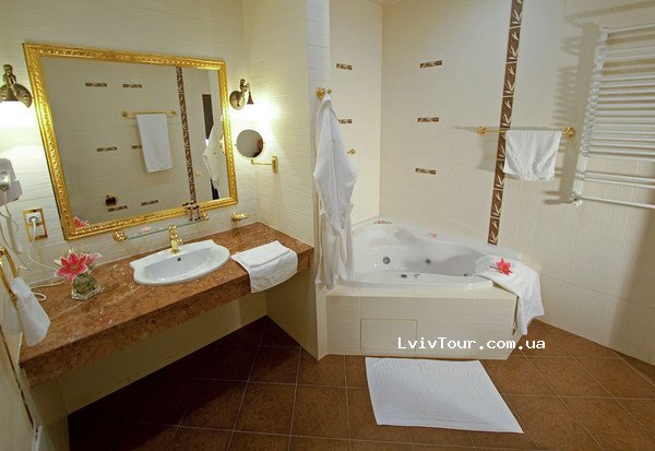 Junior suite Grunge - 1050 UAH Junior suite Bridal - 1300 UAH These rooms with exclusive interior consist of one double bed, soft sitting area, satellite TV, telephone, mini-bar, Wi-Fi Internet, individual safe, air conditioning, bathroom with bath-jacuzzi, mini-bathroom set, bathrobes and slippers, hair dryer. Special attention deserves Junior suite Bridal with an oval double bed near which is located bath-jacuzzi.