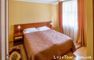 Standard double - 810 UAH Double superior - 880 UAH The rooms with a very cozy interior, large double bed, desk, satellite TV, Wi-Fi Internet, air conditioning, mini-bar. There is a shower cabin or bath, hair dryer, bathrobes and toiletries in the bathroom. Superior standards differ from the standards by area.